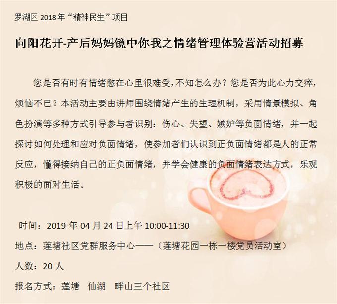 罗湖区2018年“精神民生”项目 向阳花开-镜中你我之情绪管理体验营活动招募