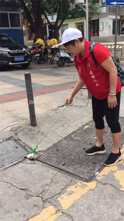 一大早,莲塘老协本次活动负责人兰花阿姨就带领着姐妹们来到社区党群服务中心办公室和流动义工站的热心义工顺利会师,大家拿好工具、分配好任务,就组成行动小分队出发了。队员们有的沿着社区街巷捡拾垃圾,有的专门负责清理卫生死角,有的拿着宣传资料进行文明宣导,有的直接劝阻随地吐痰、乱丢烟头等不文明行为。