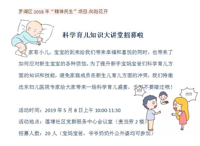 罗湖区2018年“精神民生”项目-向阳花开科学育儿知识大讲堂招募啦