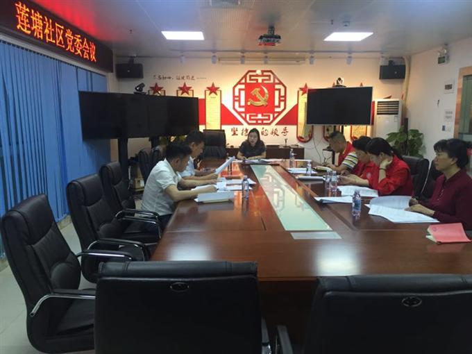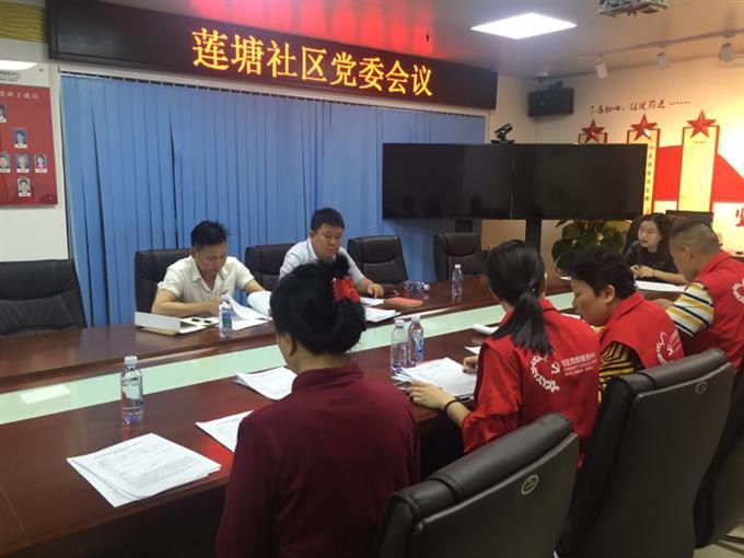 莲塘社区党委于2019年5月17日上午,在莲塘聚宝商业中心二楼莲塘社区党群服务中心会议室,组织召开莲塘社区党委会议,社区党委委员参加了会议。