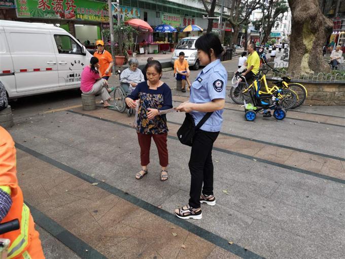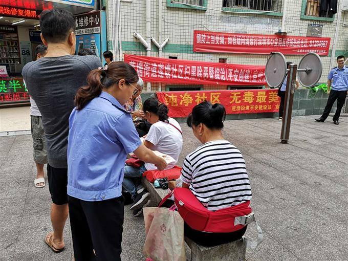 禁毒社工向过往居民派发禁毒宣传折页,宣传毒品知识、拒毒技巧,使得居民群众增强防范意识,远离毒品。(莲塘社区发言人 郭鸽)