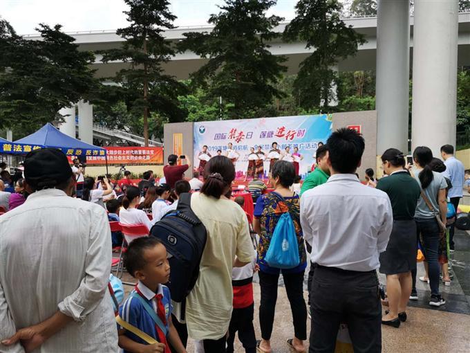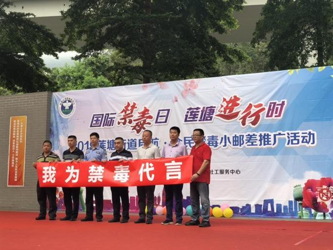 2019年6月25日下午,莲塘街道在长岭社区文化广场开展一场“6.26”国际禁毒日大型主题宣传活动。罗湖区禁毒办、街道平安建设部、街道全体禁毒社工、各社区工作站站长、各社区分管负责人及工作人员等前往现场参加了此次宣传活动。(莲塘社区发言人 郭鸽)
