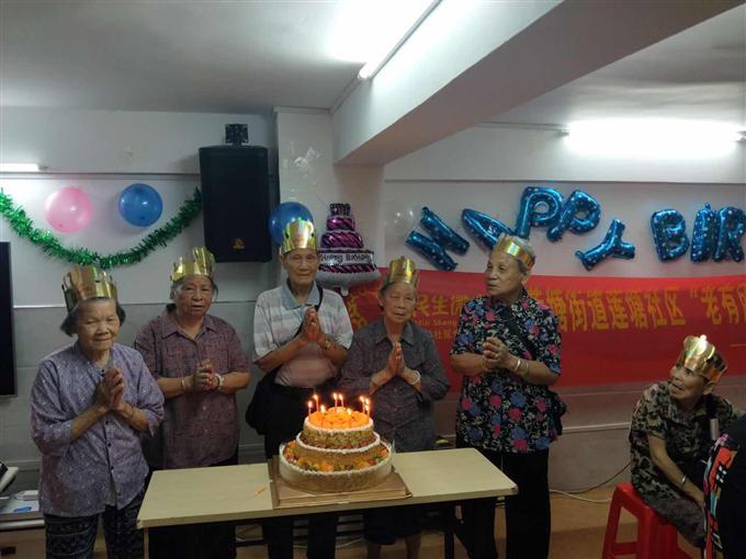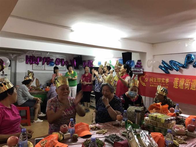莲塘社区讯:2019年7月2日下午三点,莲塘社区活动室传出欢乐的音乐,欢快的笑声,洋溢着一片欢乐祥和气氛。莲塘社区工作站借着民生微实事平台为社区老年人开展今年第一场“老有所乐·爱满夕阳”生日会。此次活动共有40多人参与,共同度过了不一样的生日。本次生日会以拓展长者的人际交往圈,实现老有所乐,提升其生活归属感、幸福感及促进社区与老人之间的交流为目标。