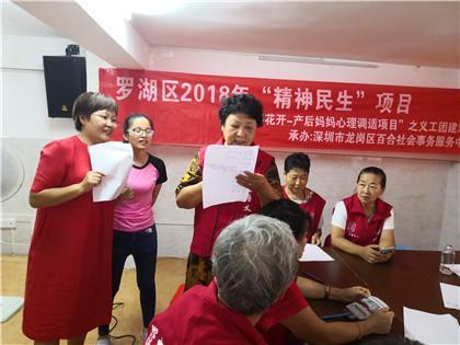 2019年7月14日上午, 三十名红马甲齐聚一堂,罗湖区2018“精神民生”向阳花开—产后妈妈心理调适项目义工团队建设在莲塘、畔山和仙湖三个社区党委的大力支持下如期举行。
