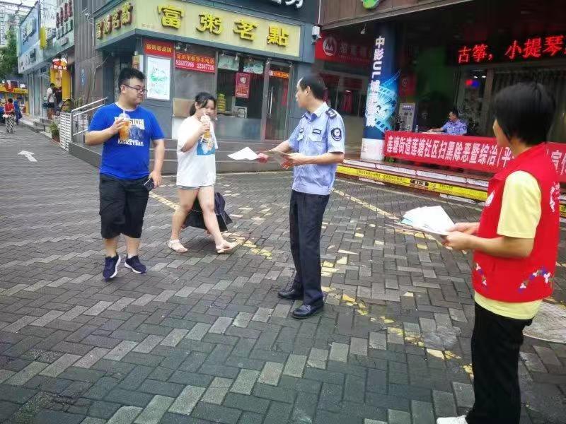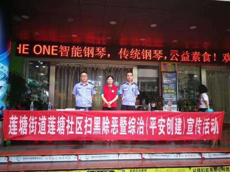 莲塘社区讯:为了深入贯彻落实关于开展扫黑除恶专项斗争有关文件精神和工作要求,积极开展“扫黑除恶”专项斗争宣传工作,营造的扫黑除恶专项斗争工作声势和浓厚氛围,2019年8月6日下午,莲塘社区工作人员和网格员,在聚宝商业中心门口开展扫黑除恶暨禁毒宣传活动。