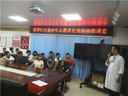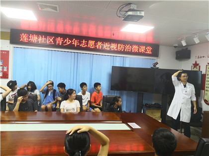 随着科技的进步,越来越多的电子产品如手机、平板电脑等。虽然方便了我们的生活,但是也对视力造成很大影响,其中青少年近视率逐年增长。针对此情况,在莲塘社区党委的大力支持下,2019年8月13日下午莲塘社区党群服务中心联合莲塘社康为青少年讲解了近视的形成原因,近视的预防措施及方法。