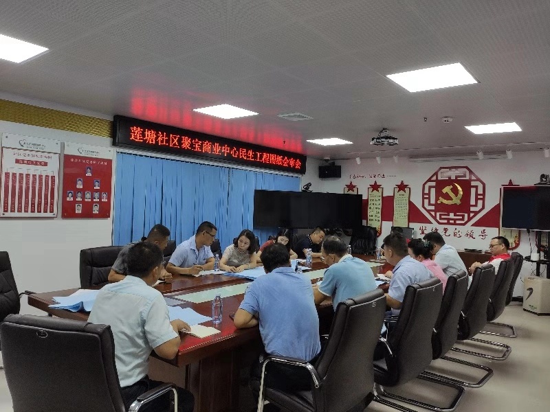 2019年9月16日上午,在莲塘社区党群服务中心会议室,召开《莲塘街道莲塘社区聚宝综合楼周边环境提升整治工程》施工图纸会审会议,并一致通过图纸方案设计,会后设计方、监理方、聚宝楼业主代表、管理处、工商银行、机建办等相关部门单位一同到施工现场查看施工情况。