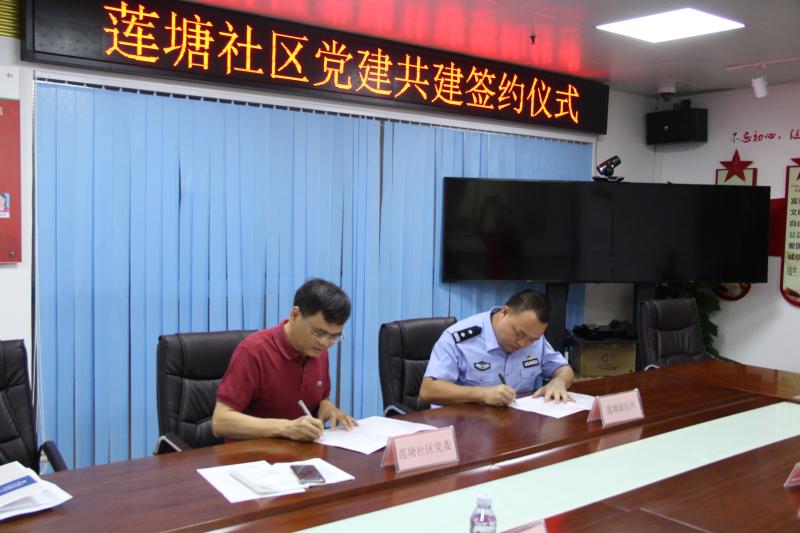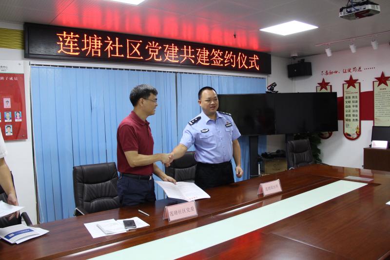 莲塘社区讯:为切实加强党组织间党建工作经验交流,增强党组织活动的鲜活性,整合社区内各类资源,实现资源共享,发挥共建双方的工作优势,共同构建和谐社区,进一步推进基层党建工作。2019年9月20日上午,在莲塘社区党群服务中心会议室,莲塘社区组织召开党建共建签约仪式。