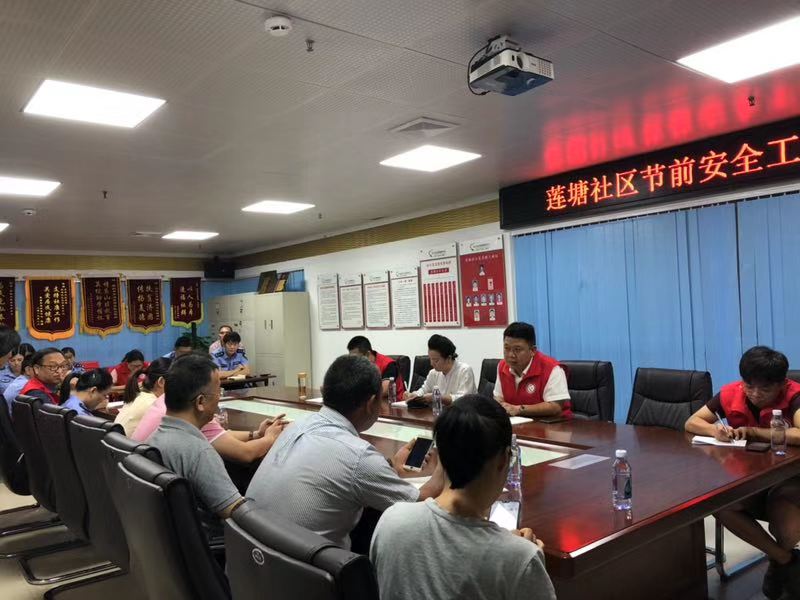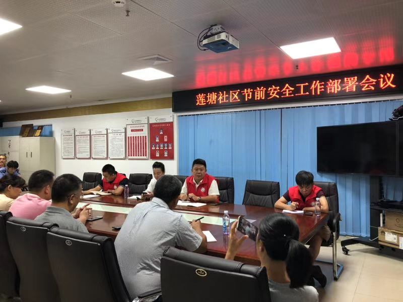 莲塘社区讯:为切实做好“国庆”前夕社区安全生产工作,杜绝各类安全隐患生产事故发生,进一步规范社区安全消防工作,2019年9月24日下午,莲塘社区工作站积极组织社区工作人员和网格员,在党群服务中心多功能会议室召开节前安全生产工作部署会议。