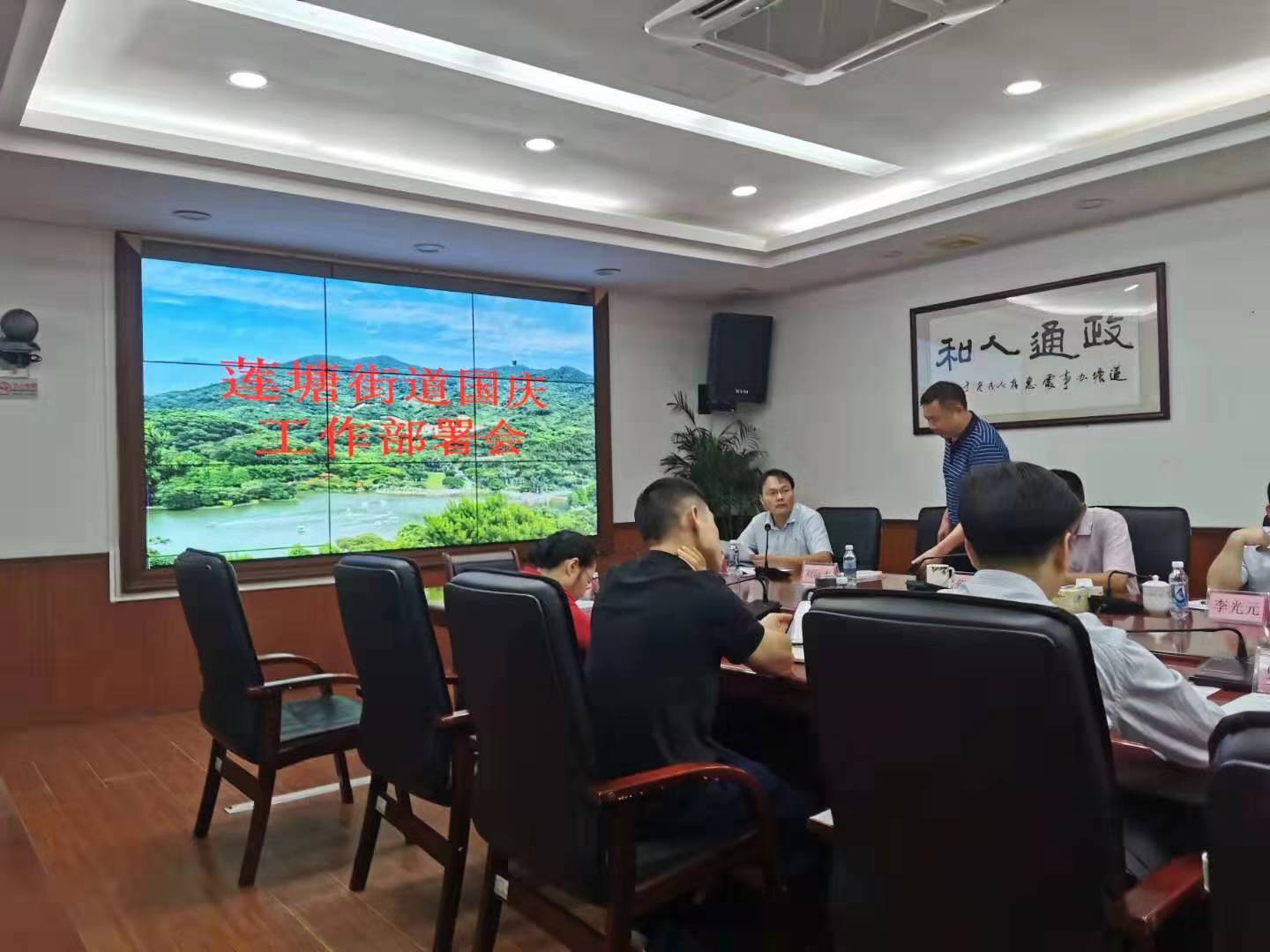 莲塘社区讯:根据上级领导指示要求,“防风险、保安全、迎大庆”工作已进入决战冲刺阶段,为了做好国庆期间的安全相关工作,2019年9月29日上午,莲塘街道在B会议室组织召开国庆工作部署会。