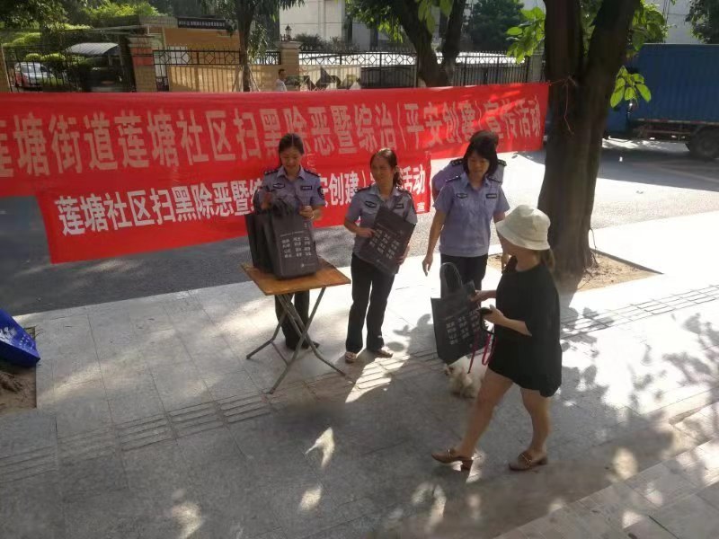 宣传活动中,工作人员积极主动地向过往的居民们发放宣传册宣传扫黑除恶,禁毒活动,回答居民关于黑恶的疑问,向群众公布了扫黑除恶有奖举报方式、电话,鼓励群众积极同身边存在的各类黑恶势力作斗争,共同构建平安和谐社会环境。