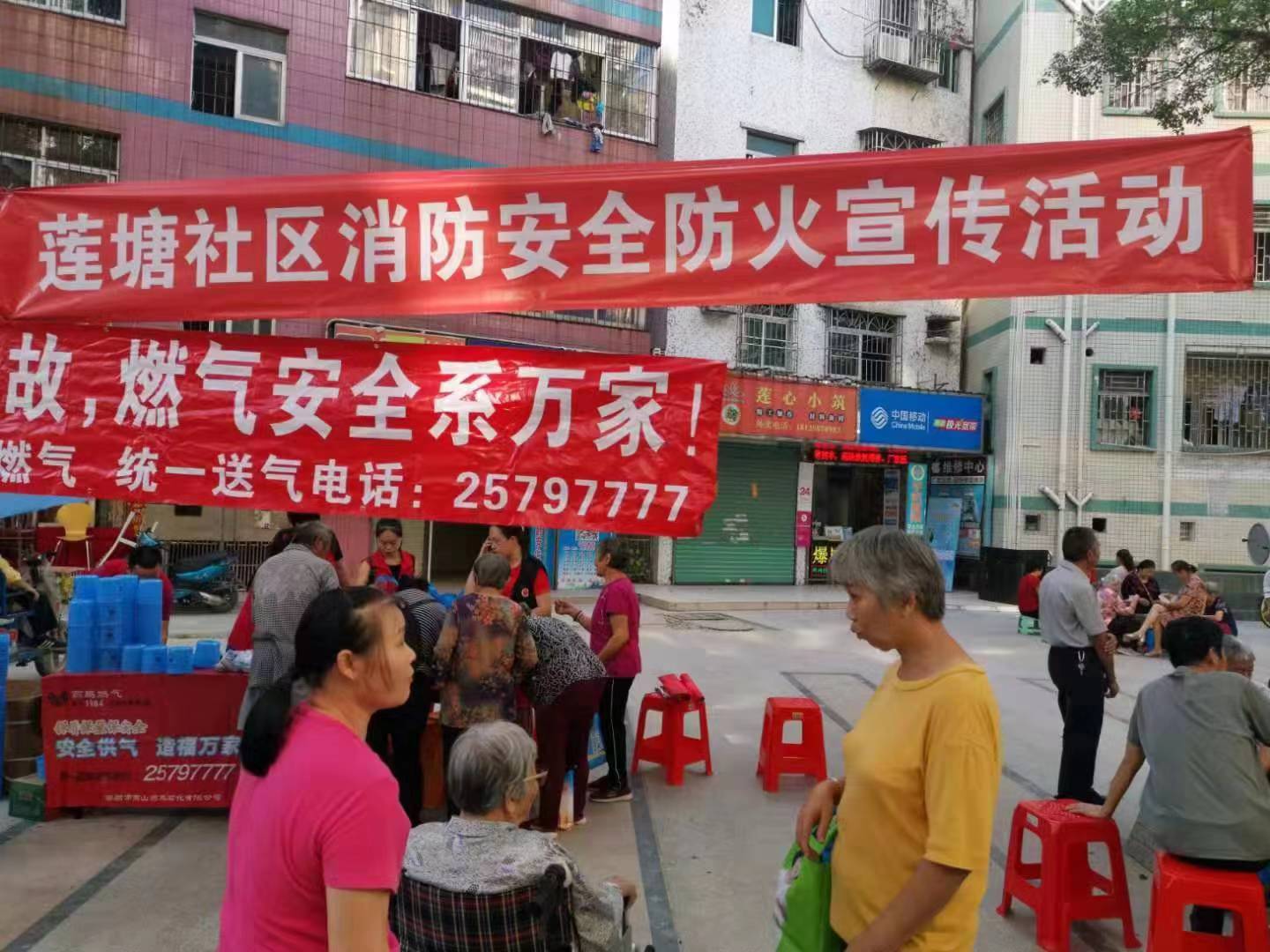 莲塘社区讯:为提高社区居民群众的消防安全意识,增强消防安全防火能力,2019年10月25日下午,莲塘社区在休闲文化广场开展了主题为“消防安全系万家”的防火期消防安全知识宣传活动。