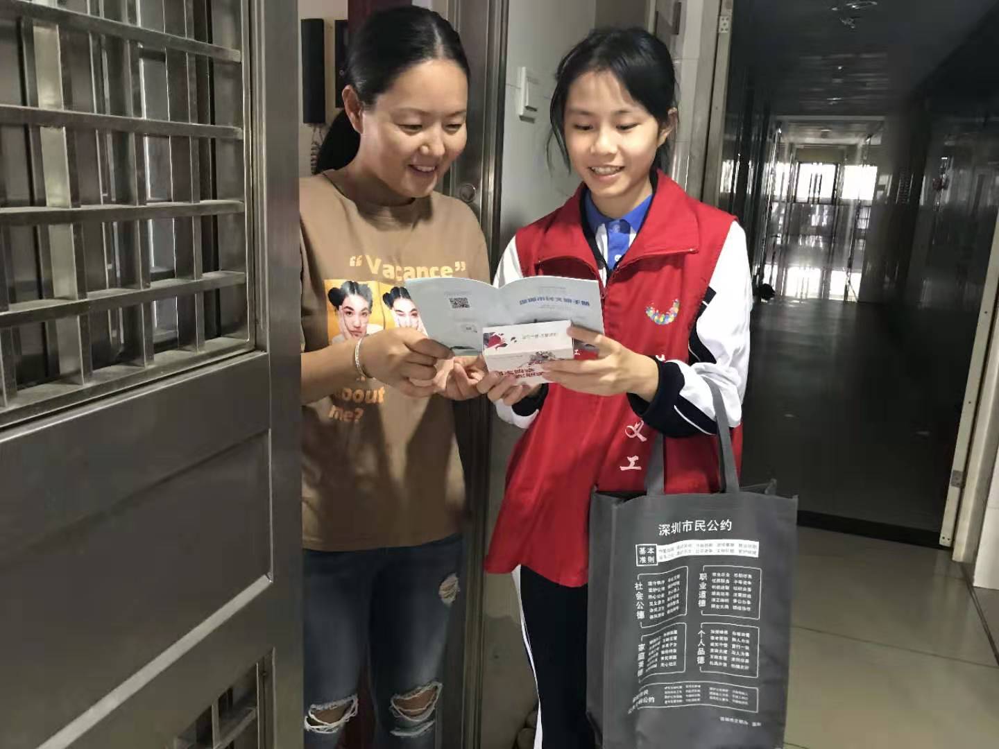 莲塘社区讯: 2019年11月9日至10日,莲塘社区在社区党委的支持下组织青少年义工及家长52人,为深圳市创建文明城市助力,对辖区内的花园小区进行了入户宣传活动。