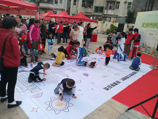 本次活动设立了签名墙、创建文明城市主题版画涂鸦、垃圾分类趣味游戏、创文视频宣传、文明城市互动问答。