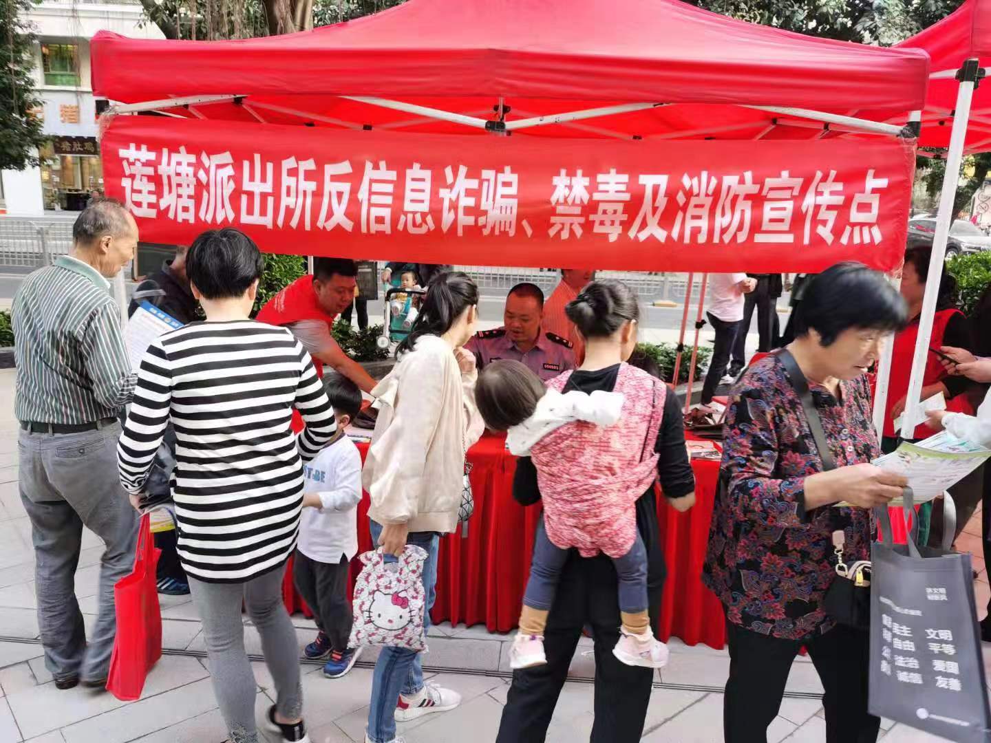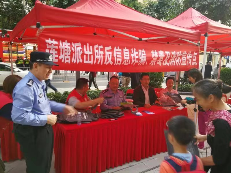 莲塘社区讯:为了深入开展社区禁毒宣传工作和开展扫黑除恶专项斗争,莲塘社区驻点团队联合莲塘派出所,于2019年11月22日下午,莲塘社区在岁宝盒马里广场组织开展驻点接访活动、反信息诈骗、禁毒及消防安全宣传活动,以党带头,社区联动,发挥了驻点团队密切联系群众的作用。