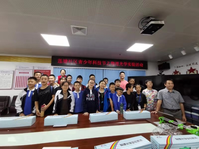 莲塘社区讯:为丰富辖区居民的社区生活,打造积极向上的社区氛围,在居民中营造爱国、爱党、爱科学、爱生活的健康气氛,莲塘社区本着“为民办实事”的原则,着重体现“以人为本”的宗旨,在莲塘社区党委的支持下,莲塘社区党群服务中心组织青少年开展“放飞梦想,探索未来”为主题的青少年科技节活动,本活动分为趣味化学实验、物理光学实验和物理电磁学实验三大主题。