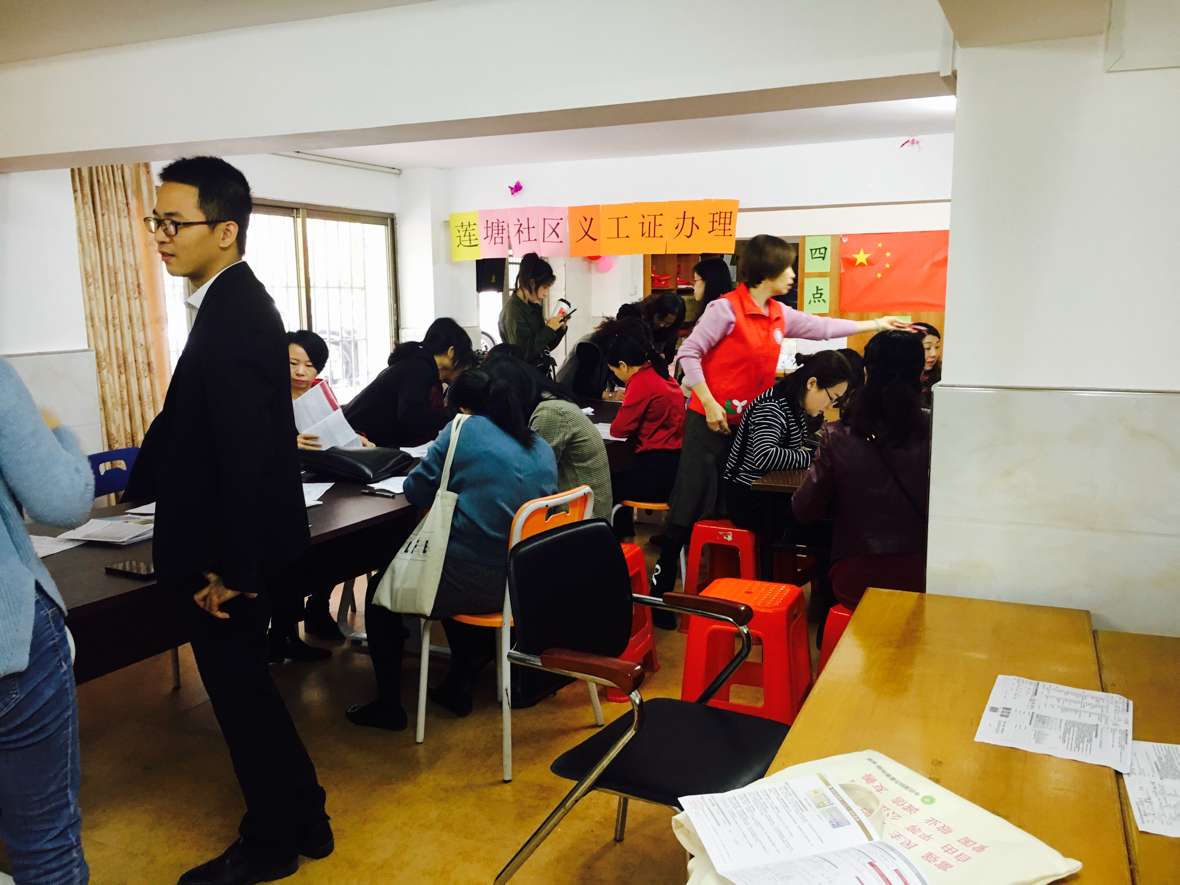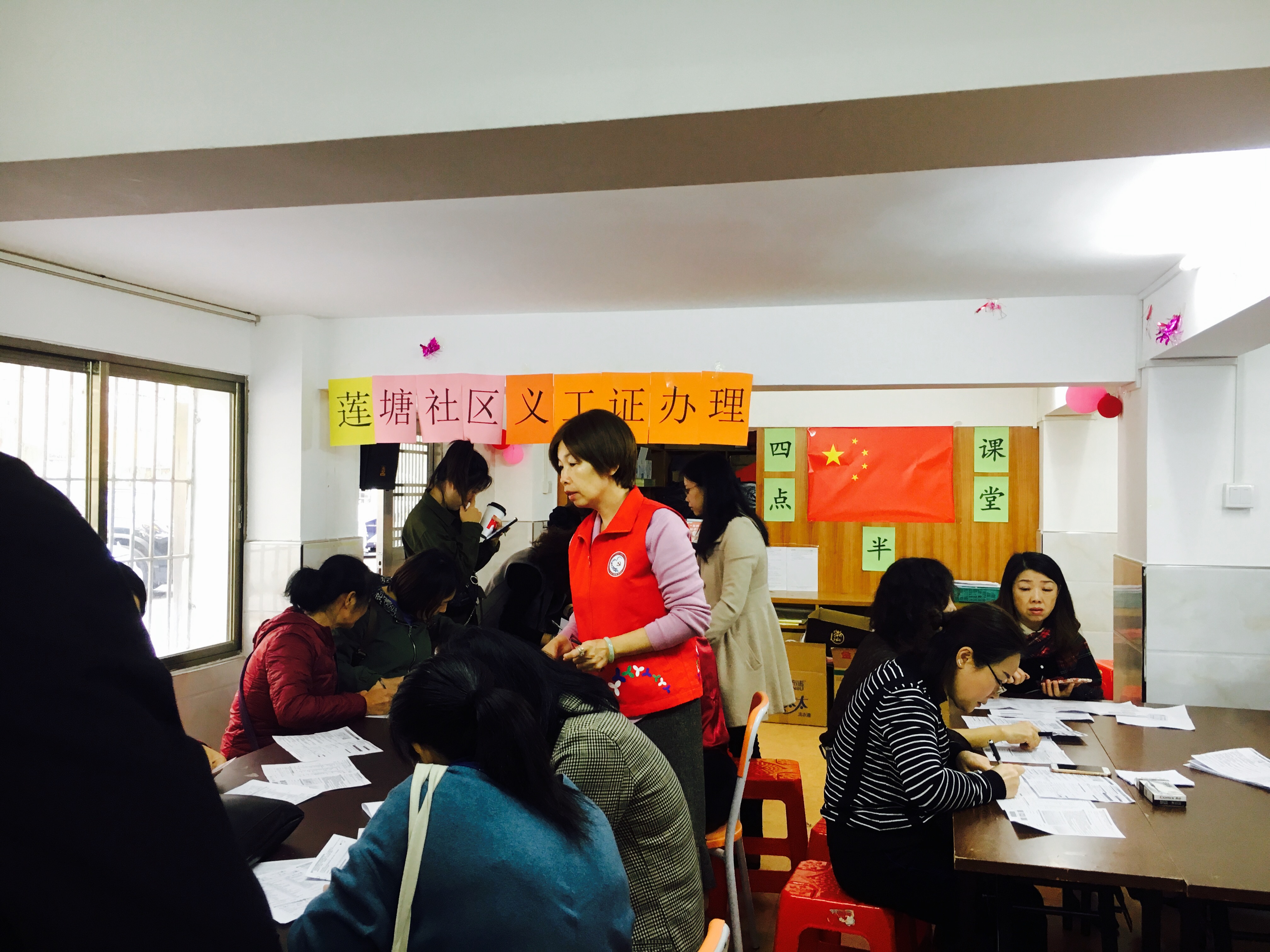 莲塘社区讯:为壮大莲塘社区的义工队伍,加快志愿者服务队伍制度化,信息化, 2019年12月12日,莲塘社区党群服务中心特邀请中国银行的工作人员为莲塘社区志愿者现场办理电子义工证。