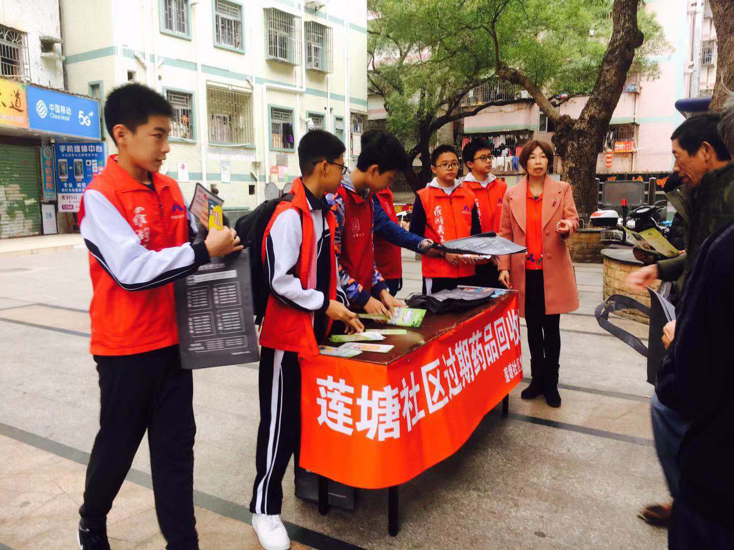 莲塘社区讯:2020年01月19日,在莲塘社区党委的大力支持下,莲塘社区党群服务中心组织开展了青少年志愿者药品安全社区宣传活动和过期药品回收活动。此次活动旨在利用寒假带动社区青少年及家庭关注和推动药品安全知识,提升健康生活理念,促进居民用药安全。