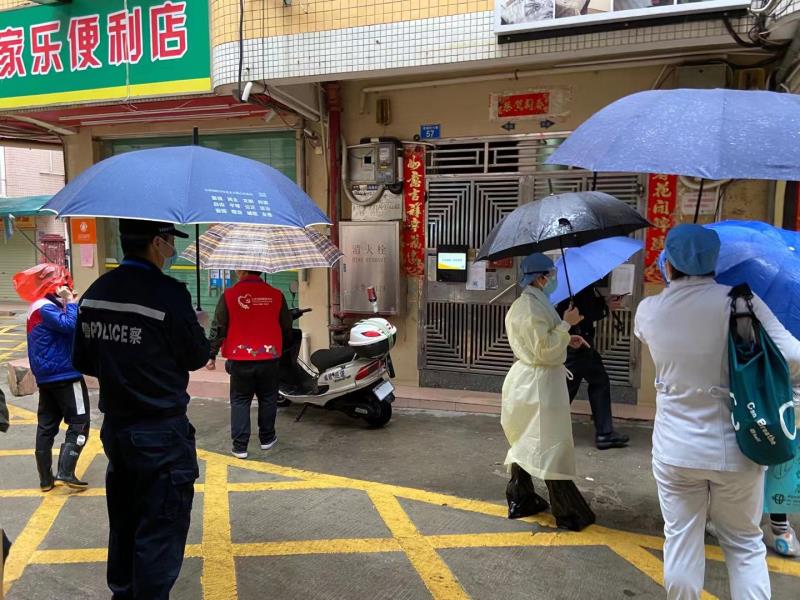 莲塘社区讯:社区防控“三人小组”工作人员对辖区内未解除居家隔离医学观察人员进行采样,上门后,由社康工作人员负责了解被访者的身体情况、测量体温、宣讲政策并进行现场采样,由社区工作人员作好登记记录,派出所工作人员提醒返深人员做好居家隔离观察等。样本将送至符合条件的实验室进行集中检测。为尽早筛查出辖区潜在的新冠肺炎感染者,尽最大努力减少社区传播风险。