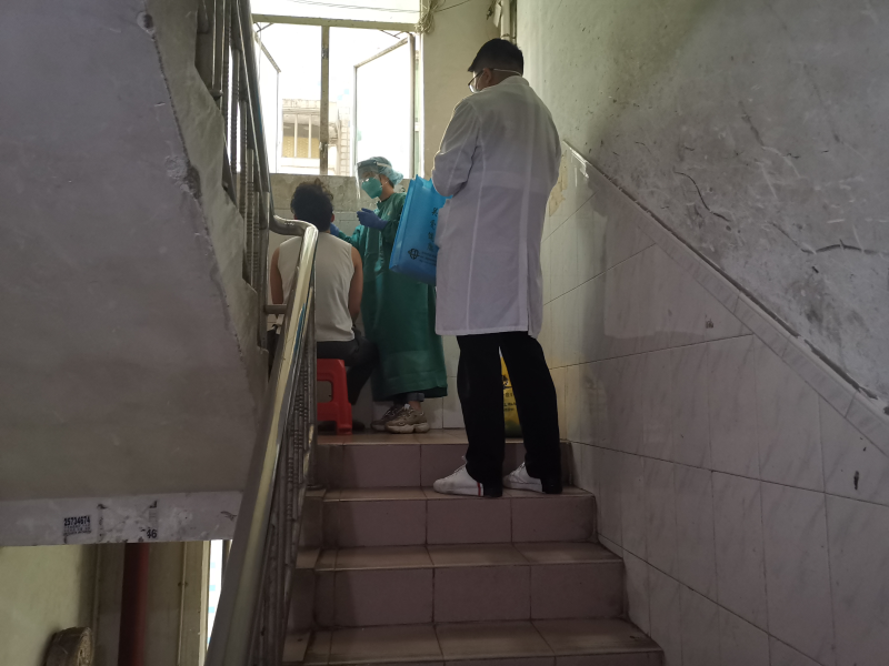 莲塘社区讯:在莲塘社区,有着这样一群人,他们身穿白色防护服,坚守在阬疫一线,被居民亲切的称谓“白衣使者”。这群“白衣使者”是莲塘社区“三位一体”防控小组成员,他们有着共同的职责,就是要做好入户跟踪的同时还要做好居家医学观察对象核酸检测工作,上门采样,做到“日增日清”,重点人群采样检测一个不漏。