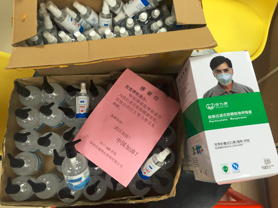 近日,深圳佳城物业管理有限公司积极履行社会责任,多管齐下,想尽一切办法购买口罩、酒精、消毒液等医用物资,用于疫情防控一线。捐赠现场,爱心企业负责人将物资送到工作人员手中,并对社区防疫一线工作者付出担当与日夜坚守的无私奉献精神表示敬佩。