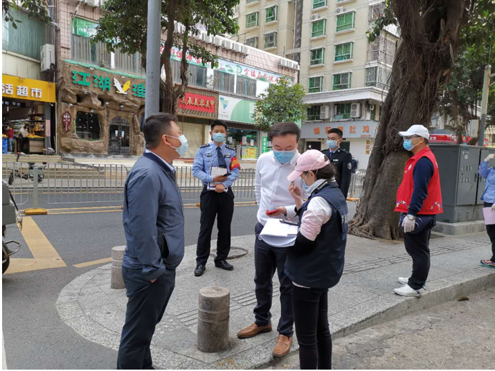 2020年3月2日下午,莲塘社区第一书记李岸英、社区党委书记王建平带领社区工作人员在辖区各企业、各门店进行复工复产消防安全巡查,了解企业落实防控措施和恢复生产的情况,帮助解决企业疫情防控困难和复工复产方面的需求,积极做好疫情防控和复工复产“两手抓”工作。