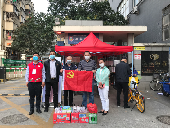 金色年华支部一方面对接物业管理处,为其提供力所能及的防疫物资,另一方面积极响应区委组织部发出的募捐倡议,号召全体党员进行爱心捐款,同时组织党员志愿者,在小区出入口,为居民测量体温,指导业主“i深圳”自主申报等,为小区居民筑牢疫情防控的安全防线。