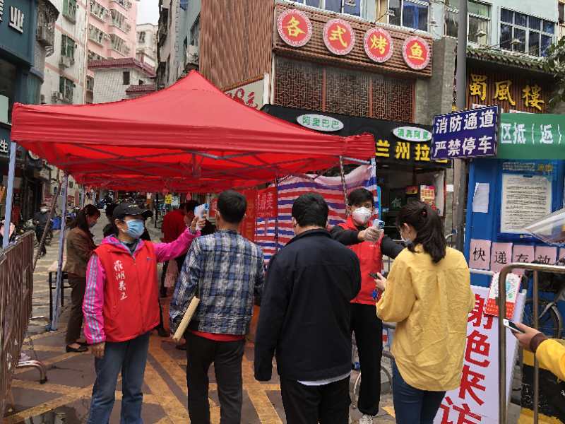 莲塘社区讯:莲塘社区防疫爱心义工队积极响应社区党委号召,在专业培训后和社区工作人员一起,在党委统一安排下投入防疫一线值守工作。连日来,义工们风雨无阻准时出现在各个路口,为进出的居民测量体温,协助返深的居民朋友申报登记。她们耐心的劝导老人孩子们不聚堆玩耍,细致的提醒大家正确佩戴口罩出行,在复工复产中注意安全和健康。