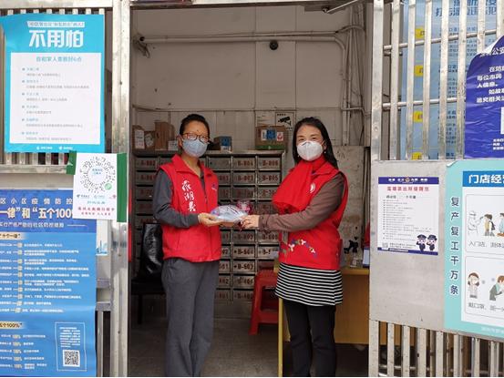 莲塘社区讯:3月11日上午,莲塘社区党委书记带领工作人员先后来到辖区内7个体温检测点,为坚守在那里的志愿者们送去口罩、手套等防护物资,向他们坚持“疫情不散,志愿不懈”的战斗精神表示由衷的谢意和崇高的敬意。