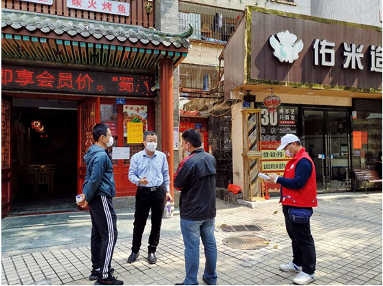 随后,钟皓一行到畔山路实地了解因疫情围挡影响商户恢复经营情况。钟皓提出不能因围挡而影响商户复工复产,在疫情关键时期,是否可以将该路段实行限时通行,最大限度避免疫情传播,起到集中管控周边人员,又不影响商户复工复产工作。