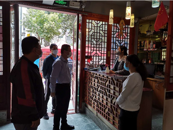 钟皓首先到一家餐饮店,详细了解该商户的疫情防控措施和复工复产情况,倾听商户目前存在的困难和诉求。他强调要求,商户要把疫情防控摆在首要位置,及时掌握员工动向和身体状况,做好检疫和员工健康防护工作,切实加强疫情防控工作,确保复工复产平稳有序。