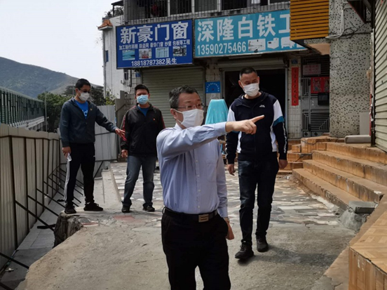 莲塘社区讯:3月14日上午,莲塘街道党工委副书记、办事处主任钟皓、莲塘街道办事处副调研员谢军一行深入莲塘社区辖区商家店面了解和指导新冠肺炎疫情防控和复工复产工作情况,莲塘社区党委书记王建平陪同。