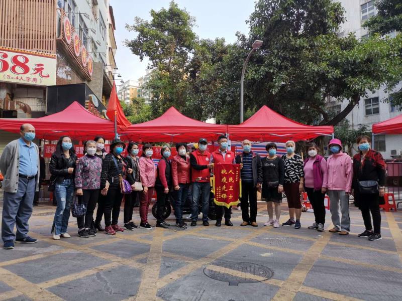 2020年3月16日下午,莲塘社区居民自发组织一个代表队,来到莲塘村六巷路口,送给莲塘社区党委一面“人民卫士,抗疫先锋”的锦旗,以此来表达对疫情期间冲锋在前、坚守一线工作人员的感谢。
