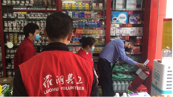 莲塘社区讯:为全力做好疫情期间消防安全工作,确保辖区火灾防控持续稳定。3月15日,莲塘社区复工复产工作小组成员到辖区各门店进行了消防安全隐患全面排查。