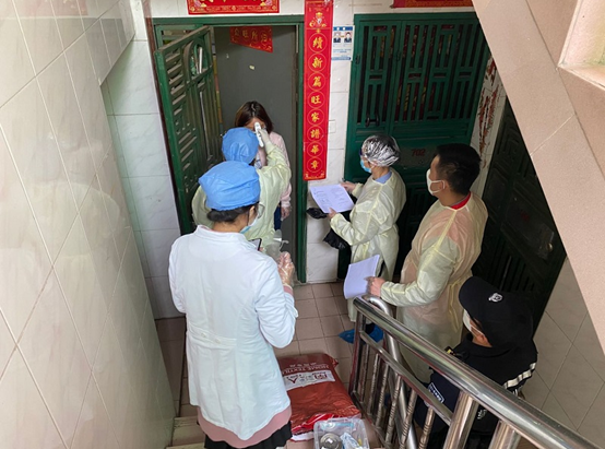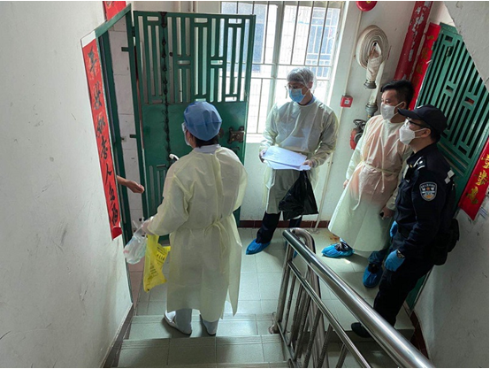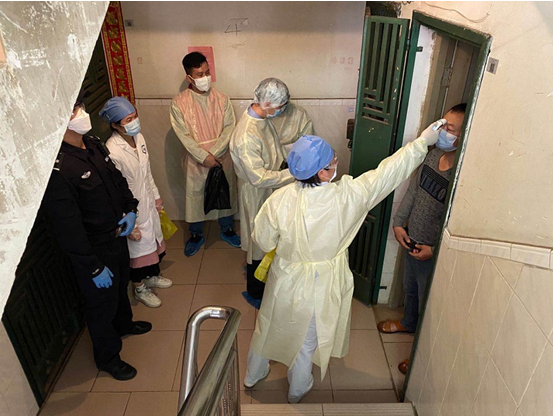 莲塘社区讯:针对防疫新阶段出现的新情况,近期离鄂返深人员的增加,莲塘社区“三位一体”防控小组做实疫情防控工作。3月16日上午,“三位一体”防控小组上门摸查疫区返深人员,及时对其相关人员进行体温测量与身体状况检查,跟踪和掌握居家医学观察人员的情况。
