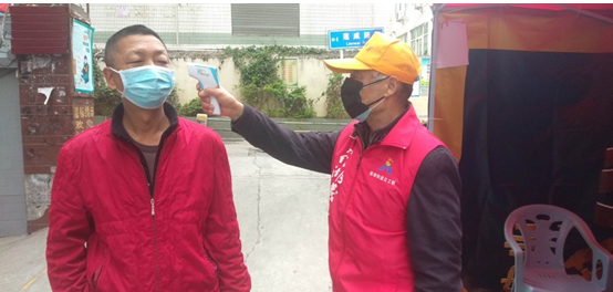 陈汉民是一名社区老党员,同时是莲馨园党支部书记。疫情刚开始,他便到社区申请当志愿者,积极参与疫情防控工作,50多天未休息过一天,他与社区工作人员肩并肩、一丝不苟地给进出的居民测体温、排查、登记人员信息、进行防疫宣传、小区消杀等,充分展现了“哪里有困难,哪里就有党员”的精神风貌。