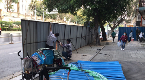 疫情防控工作以来,莲塘村实行围合式管理,对临街楼体对外单元部分同步进行封闭,只预留一个出行通道。随着部分商家陆续开始营业,一定程度上影响了经营活动。莲塘社区在防控标准不降低的同时,制定沿街围挡拆除方案,组织工作人员有序拆除,调整围挡范围。下一步,莲塘社区将继续加大工作力度,将疫情防疫和复工复产工作相结合,推动辖区商家全面复工复产。
