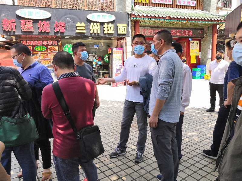 驻点团队到辖区各单位、商户进行走访巡查,针对当前的工作重点,谢军向莲塘社区提出了近期工作要求:一、要因时因势调整工作着力点和应对措施,精准实施防控策略,牢牢守住防范境外疫情输入的关口,抓好各项防控工作;二、对疫情防控和复工复产带来的各种问题,要早做准备、周密应对,及时出台针对性措施,有效维护社会大局和谐稳定;三、要坚持问题导向,健全应急管理体系,针对风险隐患进行再梳理再排查,及时发现新情况新问题,有力有效防范化解;四、切实加强应急队伍、物资储备等方面的应急响应能力建设,把问题解决在萌芽状态,努力把风险造成的损失降到最低;五、始终坚持以人民为中心的思想,要人民群众实实在在感受到获得感、幸福感、安全感。