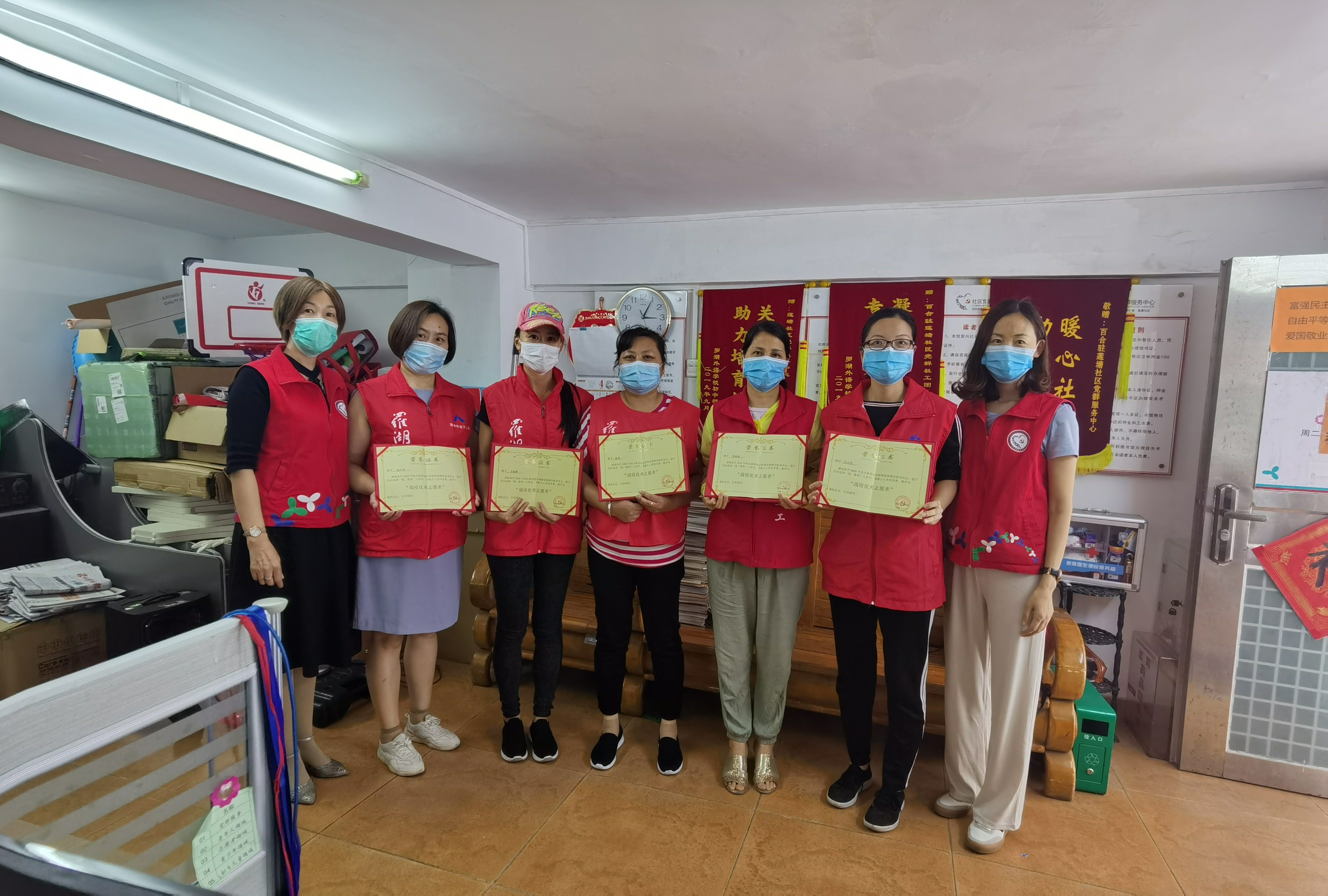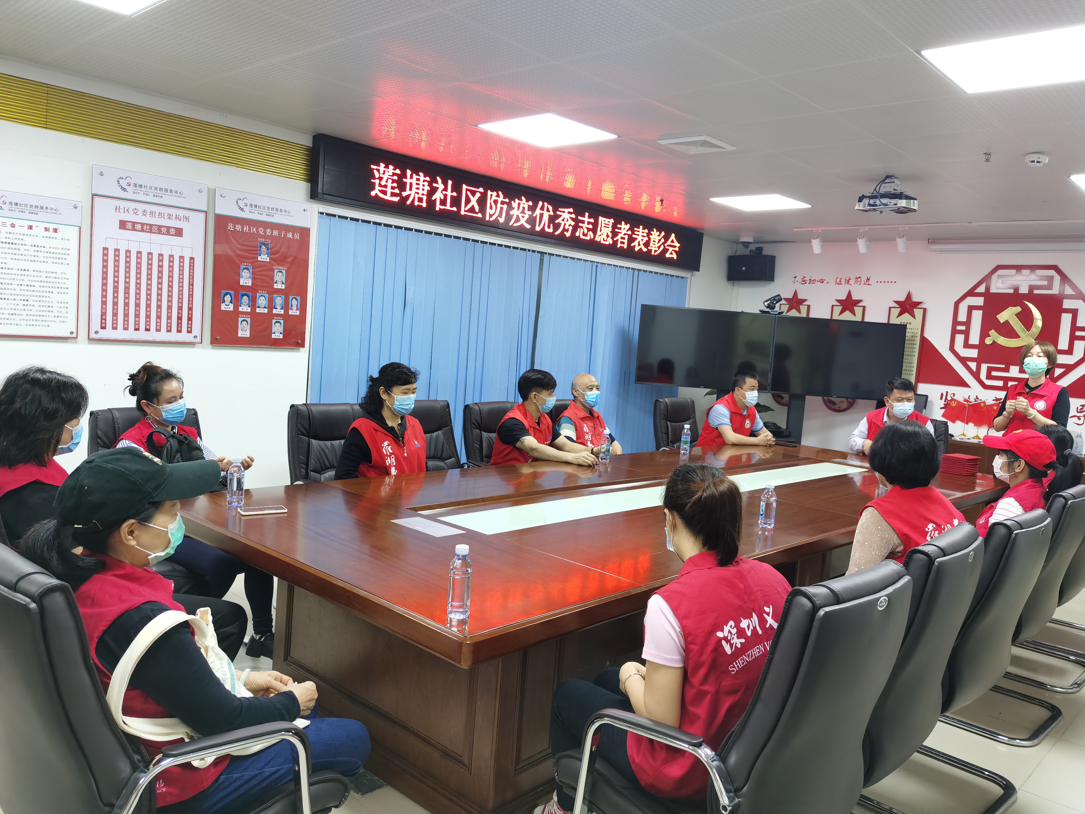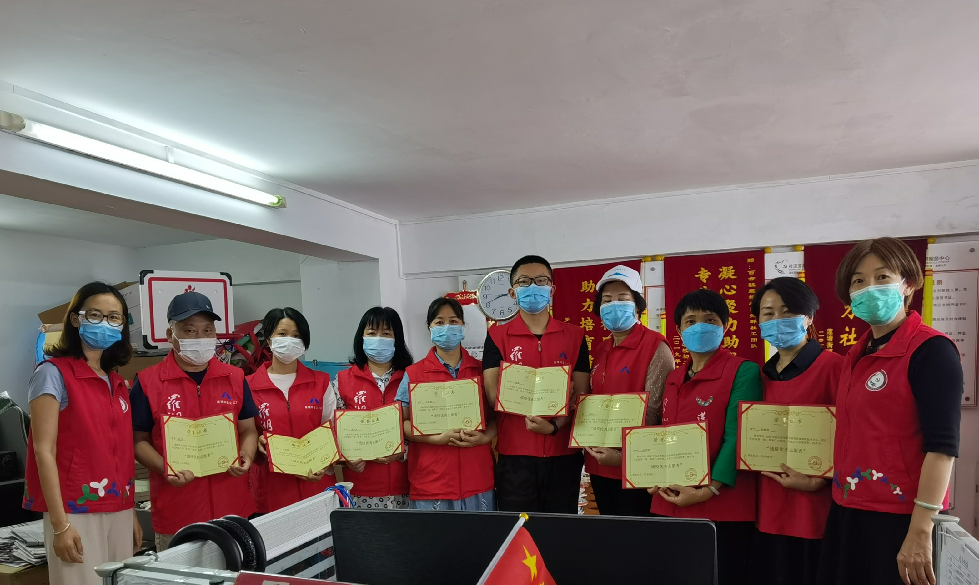 莲塘社区讯:新冠肺炎疫情防控阻击战打响以来,莲塘社区及时对辖区内的城中村及小区进行了封闭式管理,莲塘社区主要为城中村,村中道路四通八达,社区工作人员严重不足,此时志愿者们积极响应,支援社区工作,全方位的参与到社区疫情攻坚战中,在村口内他们变身“政策宣传员”、“体温检测员”、“居民信息采集员”等多个角色,他们在工作中不怕苦不怕累,尽职尽责,用行动践行爱心。经莲塘社区党委研究决定,4月28日对在莲塘社区新冠肺炎疫情防控工作中表现突出的28位志愿者予以表彰。