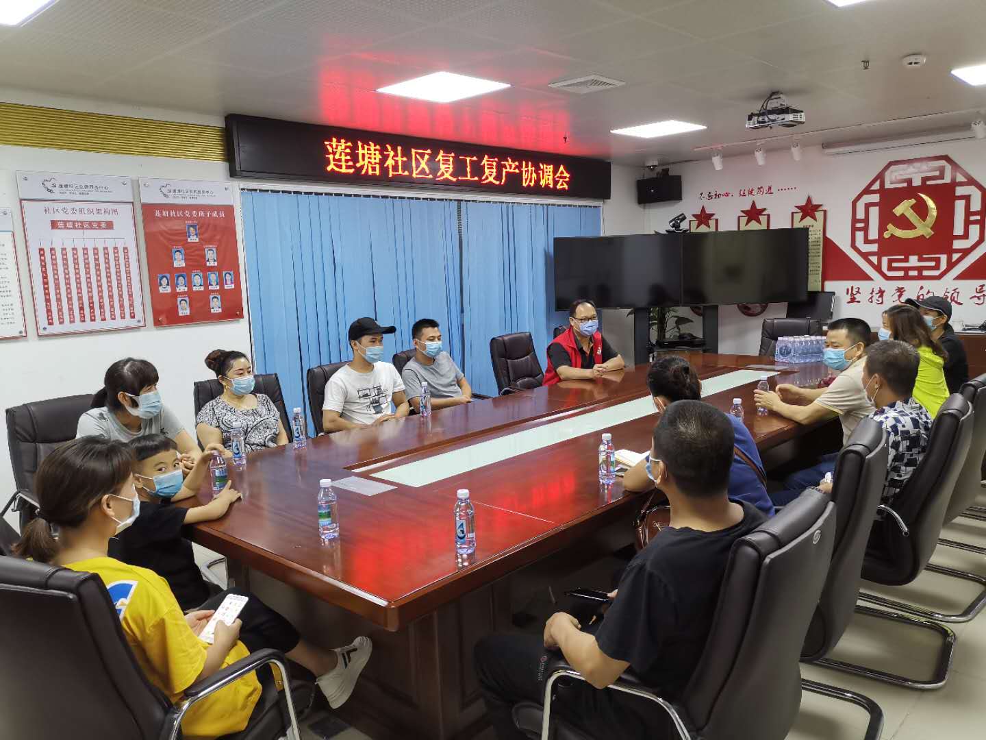 会议主要内容:为解决辖区企业和社区居民反映的多方面问题,莲塘社区网格长和居民代表进行友好协商和沟通。针对辖区企业提出复工复产要求,莲塘社区积极灵活应对,在实施城镇老旧小区改造,莲塘村雨污分流工程及处理排污管道堵塞、防疫站宿舍楼周边治理工程等,争取尽快开展民生工程,创造美好生活环境,提升社区治理服务能力。