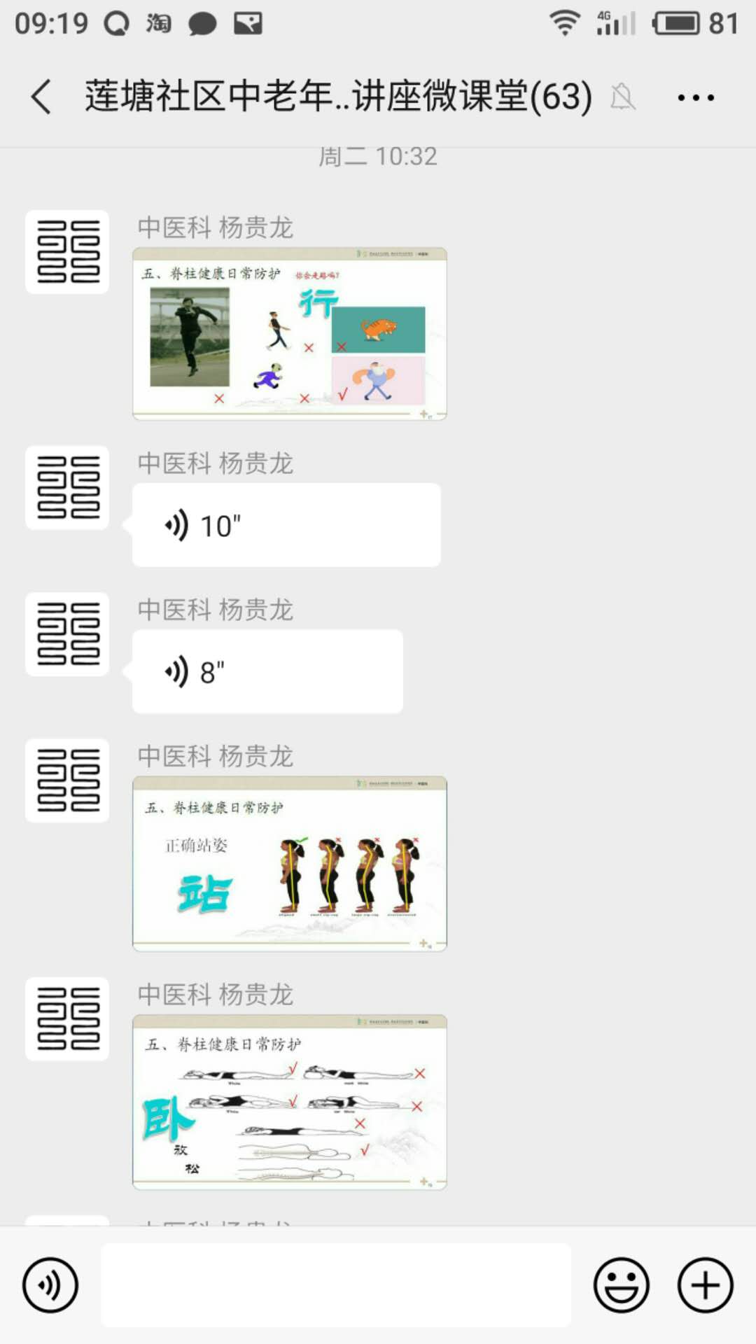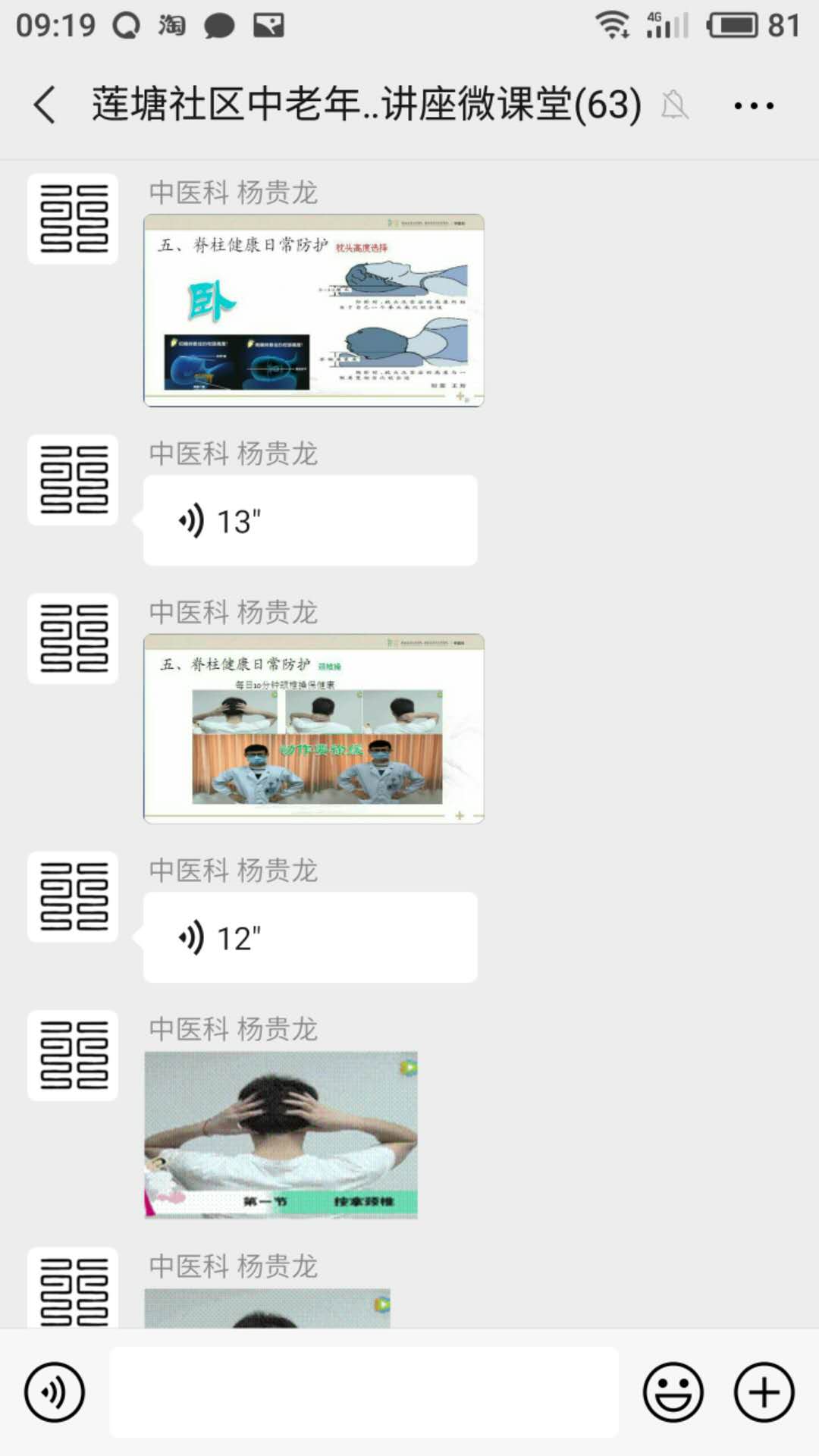 在线上,李主任为大家详细讲解了颈腰椎的位置,构造,让大家逐步了解导致颈腰椎出现问题的原因,症状以及预防。居民们都听得非常认真仔细。还给大家讲解 了“双掌擦颈法,左顾右盼法,前后点头法”等各种适合老年人的运动疗法。同时也从生活习惯方面为大家介绍了预防颈腰椎疾病的一些小技巧。