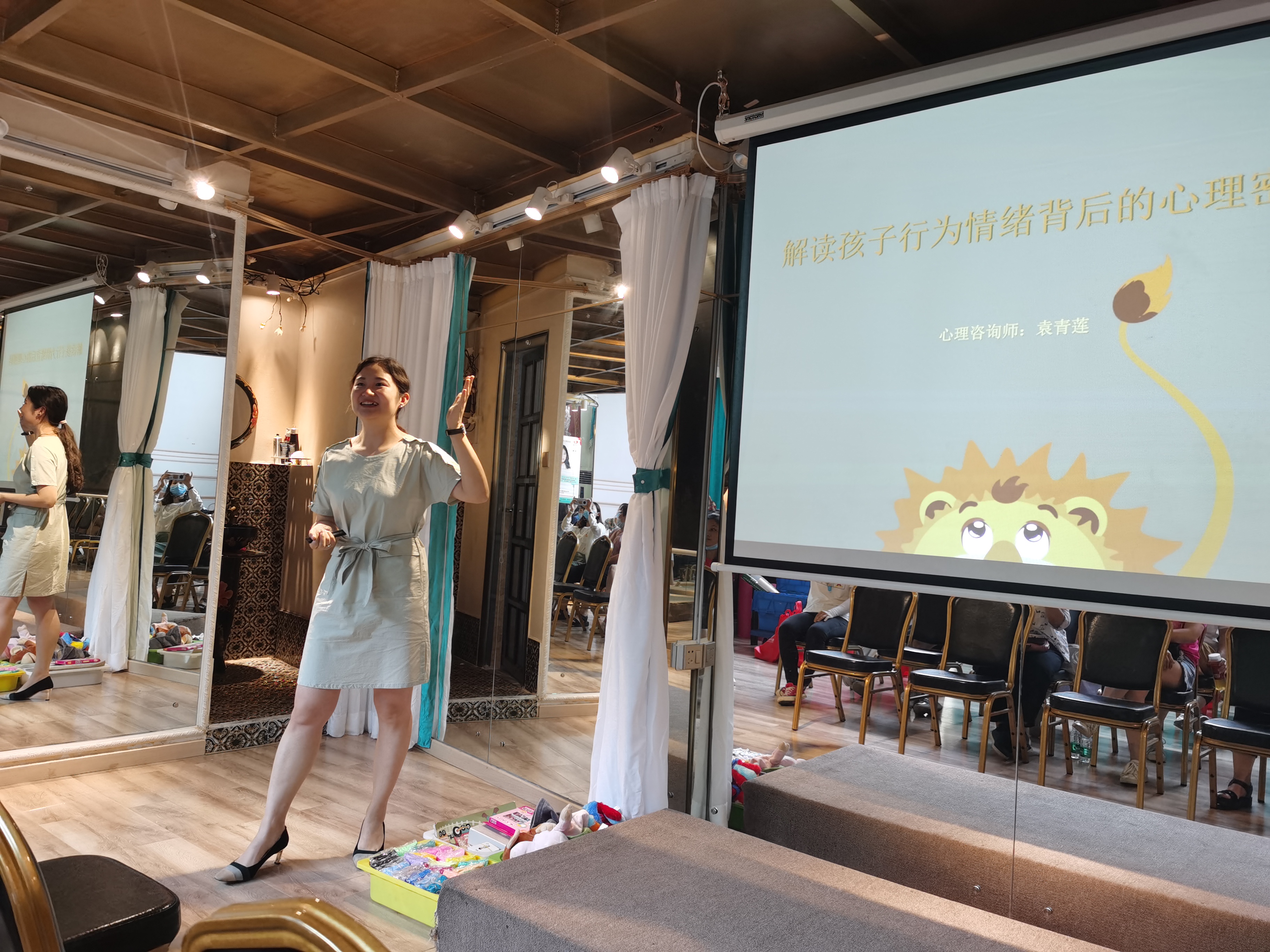 通过现场实操环节,袁青莲讲师教会了家长如何在平时与孩子沟通的过程中,把表达重点从“对人的评价”转移到“对事的叙述”,并把表达方式由“否定表达”转化为“直接表达”,再结合语言和镜子法来帮助孩子管理情绪,管理好自己。