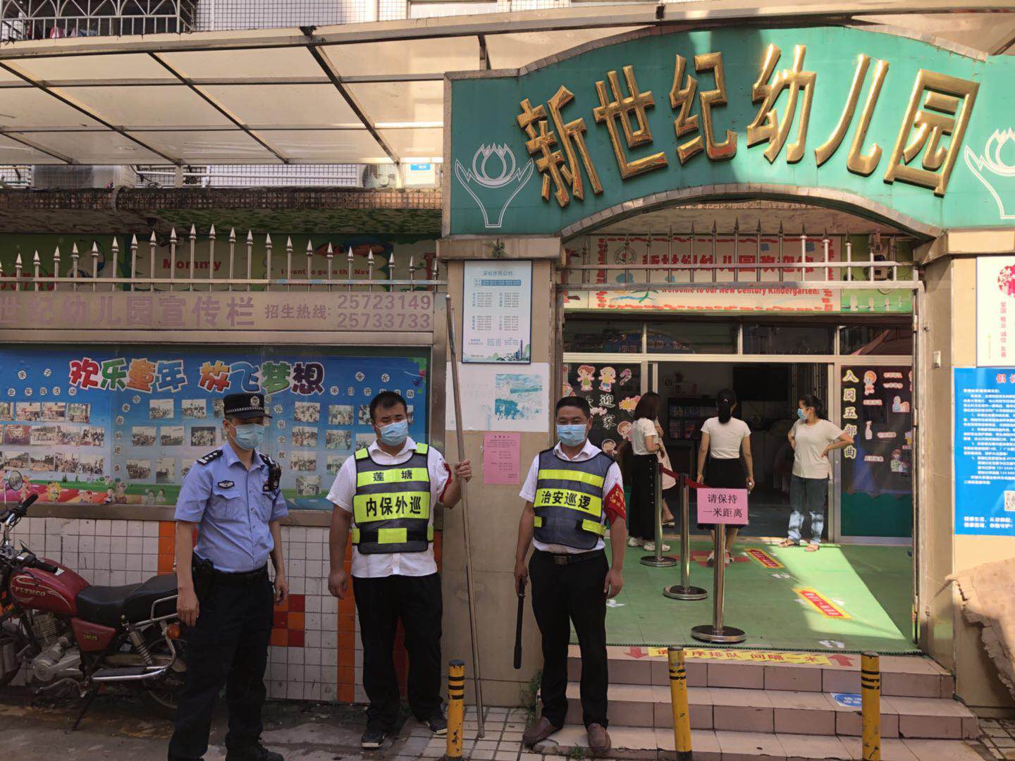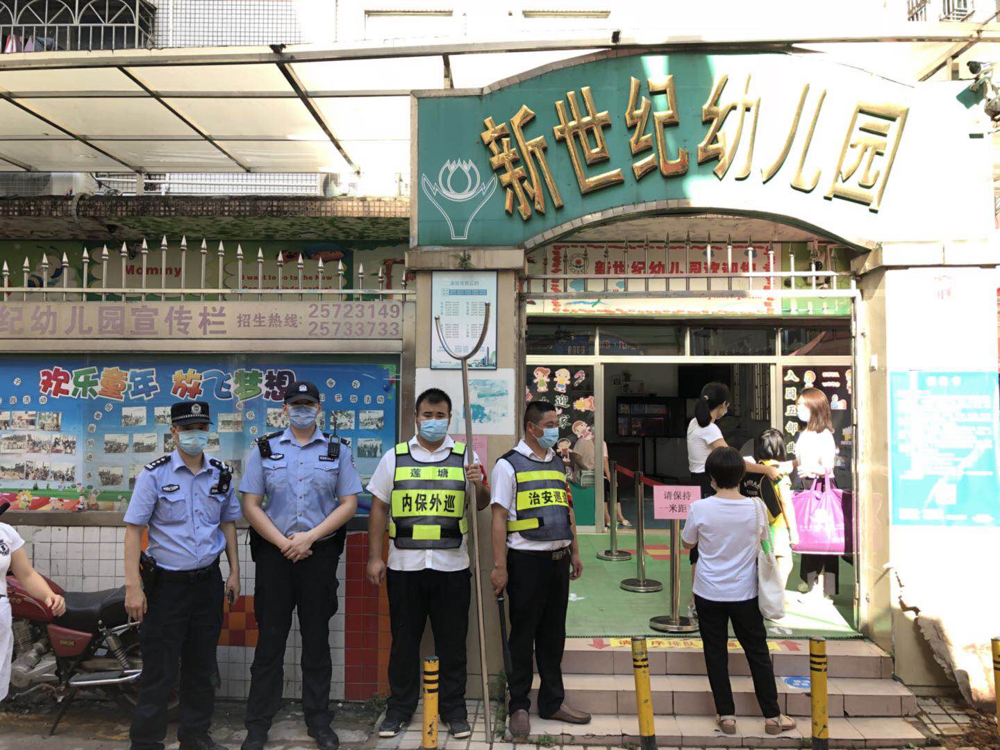 2020年6月2日下午,莲塘社区工作人员和辖区民警一道,为辖区幼儿园认真做好复园复课工作,在放学高峰期,守在幼儿园门口,疏散人群,管好家长接送孩子,严格按照一对一接送和测量体温,进一步增强防控措施的针对性、规范性和实效性,积极做好辖区幼儿园复园复课相关保障工作。