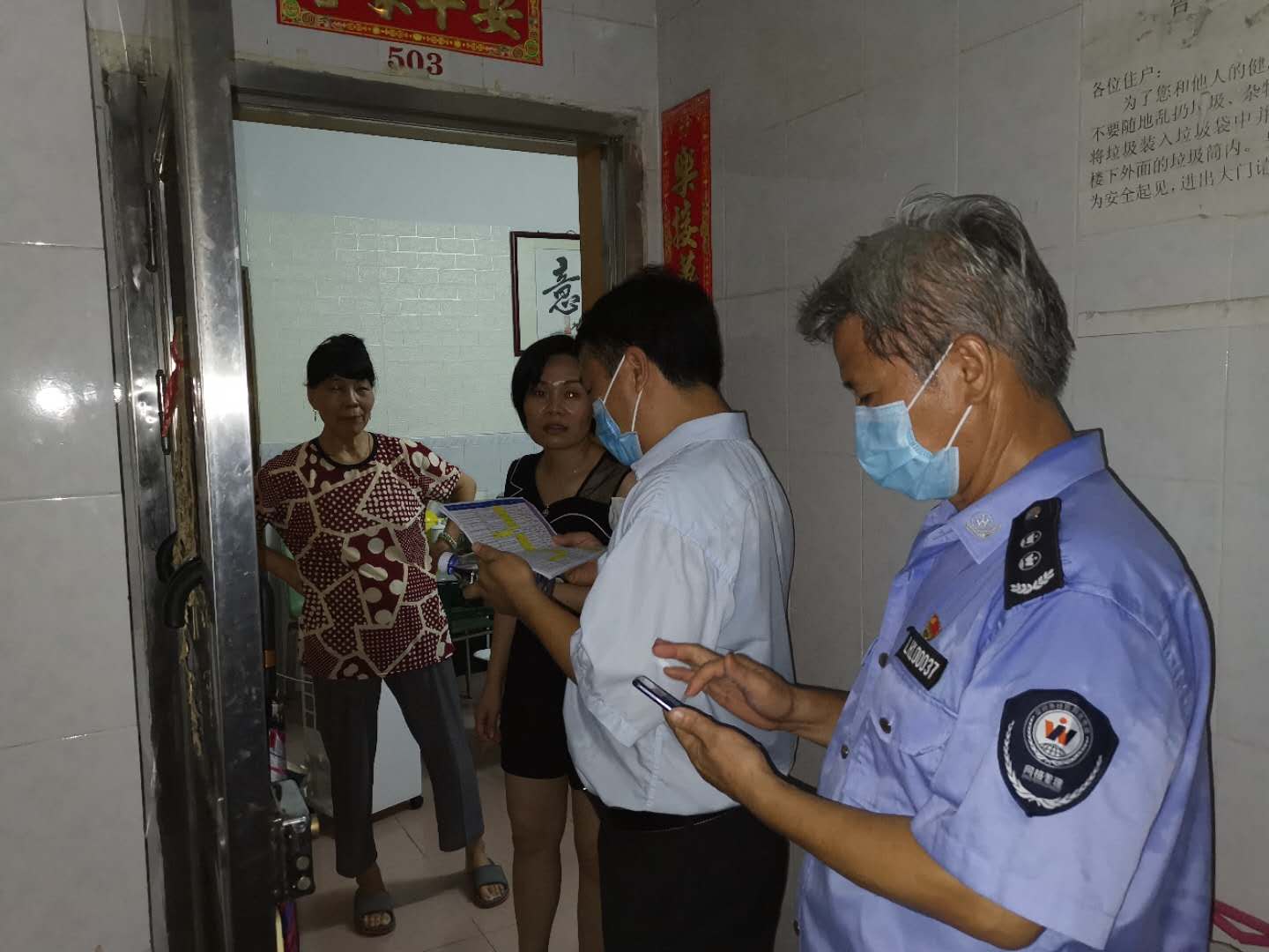 近日,莲塘社区网格工作人员和辖区民警,积极协助罗湖区罗湖外语学校初中部老师,上门核查学位申报人的实际居住地情况,确保辖区申报初中学生学位的落实。