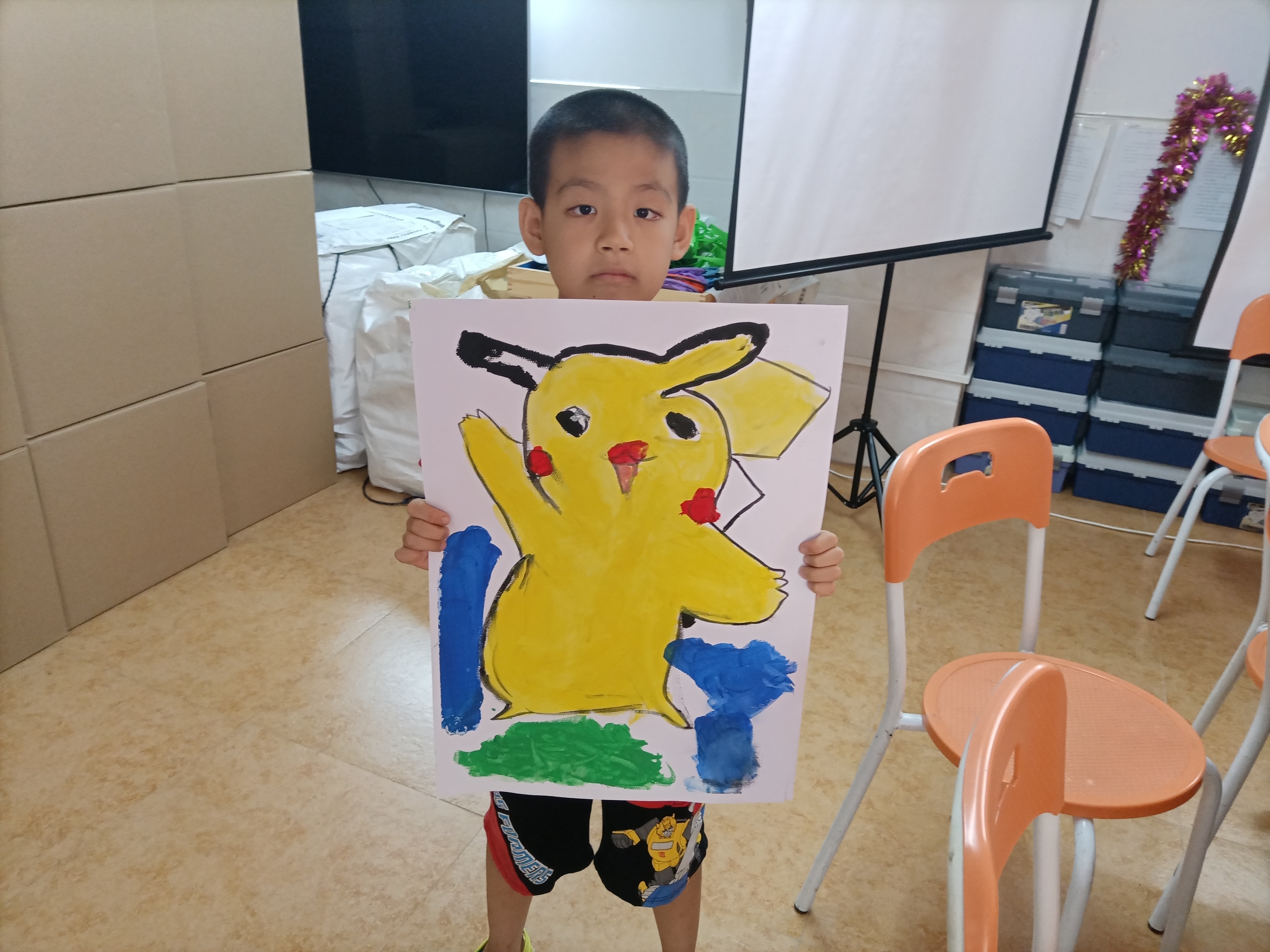 之后,在老师及家长的指导下,小朋友们开始在绘画板上进行独立创作。有的画房子、有的画卡通人物、有的画山水美景,一个多小时后,大家都完成了自己的作品,内容丰富多彩,令人赞叹。