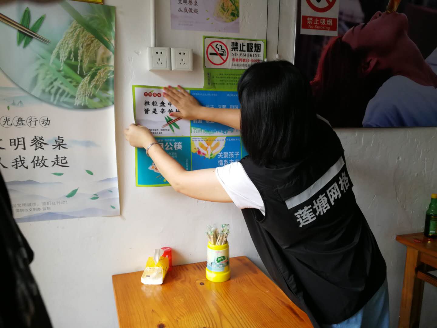 莲塘社区讯:为大力弘扬勤俭节约精神,倡导文明消费习惯,让辖区居民树立文明消费的美德,9月8日晚,莲塘社区组织党员志愿者、社区工作人员、网格工作人员等开展“文明用餐,拒绝浪费”主题宣传教育活动。