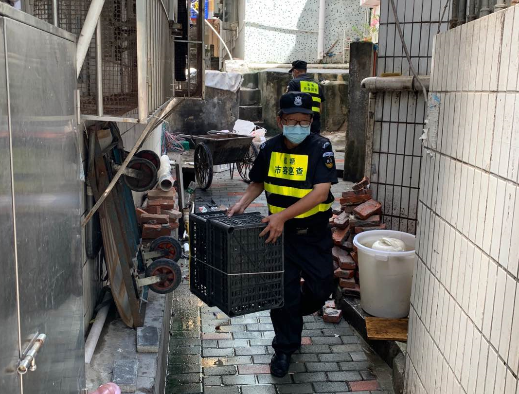 行动小组重点整治占道经营、垃圾乱倒乱扔、广告牌匾乱贴乱挂、商铺摊点乱摆乱卖、车辆乱停乱靠、建筑乱搭乱建等十乱现象,对通道的长期堆放的无主杂物进行集中清理,在全面整治环境卫生方面存在的“脏、乱、差”的同时,工作人员积极向广大商户和居民宣传环境保护、卫生健康、垃圾分类等知识,督促餐饮单位和商户积极配合整治工作,自觉规范经营行为,维护良好市场秩序和市容环境,多措并举推进各项整治任务按时保质完成。