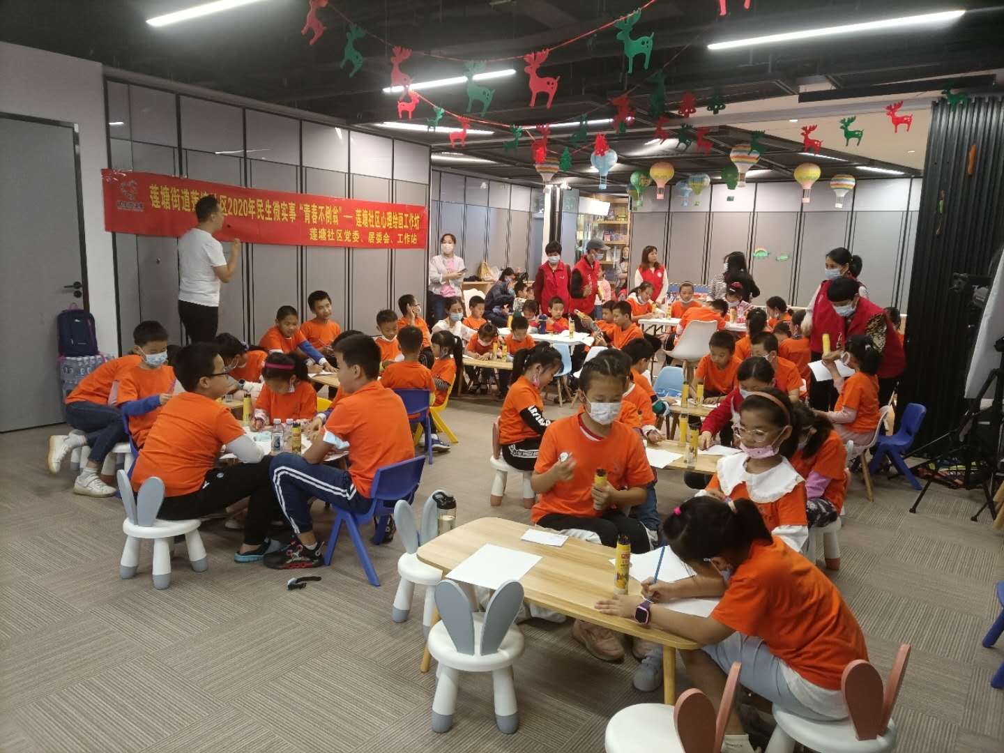 莲塘社区讯:2020年10月24日下午盒马里热闹非凡,50个孩子齐聚一堂,参与青春不倒翁心理绘画工作坊,本活动是莲塘社区民生微实事的青春不倒翁抗逆力训练继沙盘游戏,户外历奇拓展活动的又一大型活动。