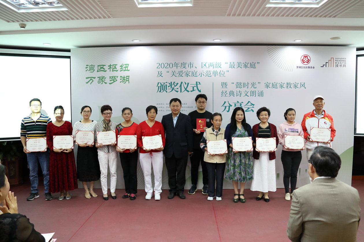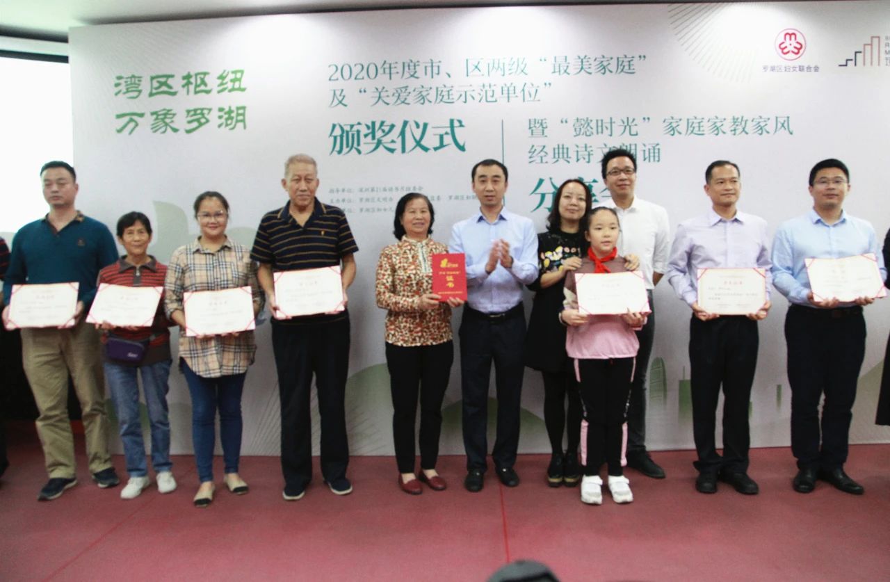 深圳市文化学者韩望喜博士,罗湖区委宣传部常务副部长、区文明办主任章红班,罗湖区纪委监委组织宣传室主任肖士卓,罗湖区妇联主席黄毓琼,罗湖区妇联副主席田林等参加活动,并为获奖家庭和单位颁奖。