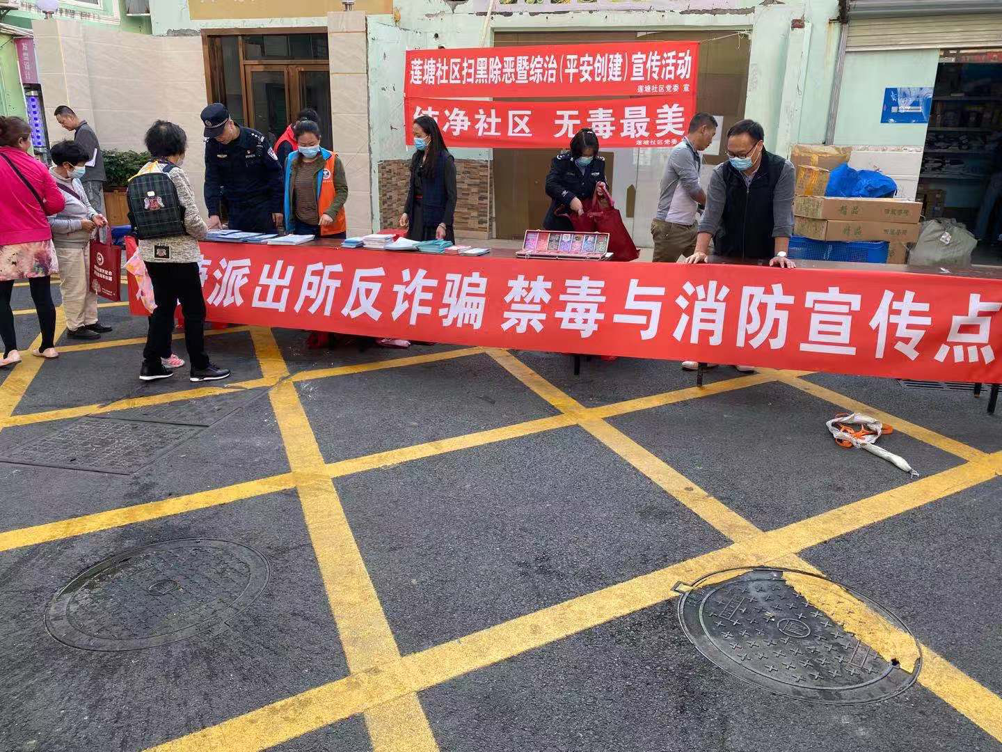 莲塘社区讯:为进一步提高辖区居民对扫黑除恶工作的知晓率,增强辖区居民防范电信网络诈骗及禁毒的知识面。12月2日,莲塘社区联合莲塘派出所在金色年华小区门口开展扫黑除恶暨禁毒反诈骗综合宣传活动。
